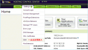 1、首先登陸你的Godaddy主機(jī)管理,點(diǎn)擊 如下圖菜單進(jìn)入SSH開通設(shè)置