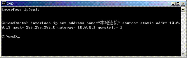 我們進(jìn)入Netsh環(huán)境,切換到interface ip環(huán)境