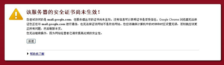 當(dāng)看到上面的技術(shù)細節(jié)的有關(guān)描述時,才發(fā)現(xiàn)是我的系統(tǒng)時間有問題,不知道什么時候手癢,被我設(shè)置成比當(dāng)前時間要早的時間了。